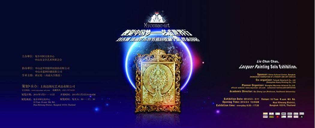 上海迈锡尼艺术品有限公司策划承办的“视觉中国梦 艺术世界行”为主题的活动已有两年,在德国、泰国、蒙古等国家举办过七场展出活动,均受到好评。2015年4月20日至4月24日在东京中国文化中心举办的“视觉中国梦 艺术世界行,田跃民、刘春潮艺术世界巡展东京站”是第八站。在展出期间并举办了主题为“东方谱系”的亚洲艺术论坛,中日艺术界专家、学者、艺术家齐聚一堂,充分发表了各自的艺术观点,大家一致认为重建东方艺术美学势在必行。这次活动得到了中国大使馆、东京中国文化中心、广东省漆画艺术委员会,和日本现地的侨团,日本徽商协会、日中商务促进会、东京新画派、以及安达株式会社、西南大学中国当代城市美学研究中心、中山市嘉利印刷有限公司、中山达华智能科技股份有限公司的大力支持和帮助