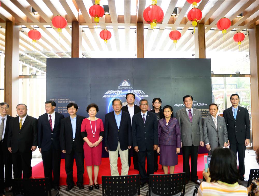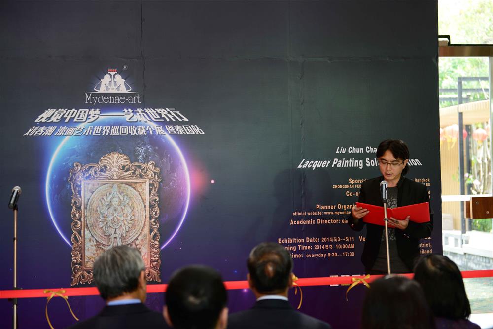 由曼谷中国文化中心、中山市文学艺术界联合会主办,上海迈锡尼艺术品有限公司策划承办;中山达华智能科技股份有限公司、中山市嘉利印刷有限公司共同协办的““视觉中国梦、艺术世界行-刘春潮漆画艺术世界巡回收藏个展暨泰国站”于2014年5月3日至11日在泰国曼谷中国文化中心举办;本次展览共展出32幅漆画作品,是作者刘春潮《中国莲》系列代表作,体现了中国传统美术技法和作者对佛教与东方哲学的理解与感悟.