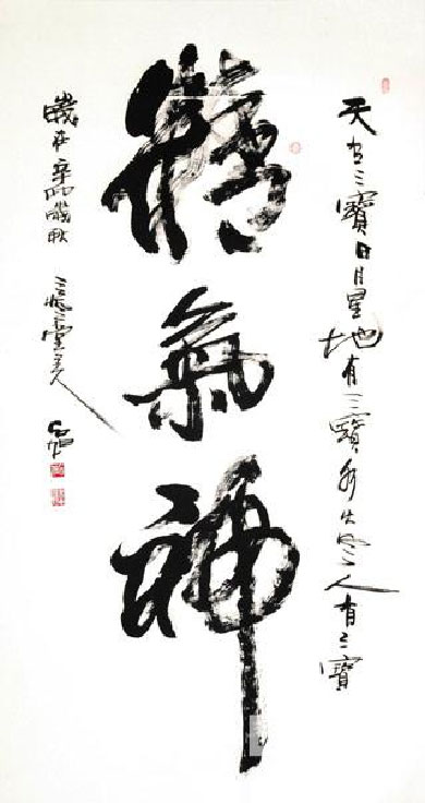 石旭、范扬、王濛莎三位艺术家的作品无不渗透着他们对中国传统笔墨的深深眷恋,以及个人对传统书画在当代语境中的突破性尝试。爽利潇洒的风格也好,水墨淋漓的效果也罢,他们为我们呈现出的是来自不同艺术背景、不同性别特征的多样艺术面貌。石旭的书体兼隶、草、行等多重风貌,以清新之气于传统书家中寻找当代性与个人气质的表达,瘦筋而富有张力;范扬的作品带具有工写兼备的刚劲爽朗,构建起带有军人英武之姿的中国气派;王濛莎以“莎式”语言勾画出一幅浅吟低唱的画面,她笔下的人物有着吴侬软语般的娇柔。