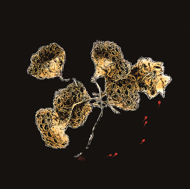 郑集思表示,莲花也叫荷花,是中国十大名花之一,素有花中君子之美称。荷花在中国寓意着“和”与“合”,“和”是和谐、和平、和美、和畅、和顺、和解等等。“合”是合作、合力,合理、合法、合拍、合算等等。这些在中国文化中具有独特而崇高的审美意义、哲学意义,在佛教、道教与儒学范畴是都带着鲜明的象征性,体现了中国人的精神价值与追求。刘春潮先生在作品主题的表现上打破常规,另辟蹊径,以莲蓬取代惯常的莲花入画,利用漆画的工具材料与中国工笔画技法相结合,别具风格的给人带来视觉与精神的享受。他从生命意识和性的角度对“莲”提出了自己的理解,对“莲”这一传统文化符号进行全新的阐释,在传统与现代之间找到了契合点。