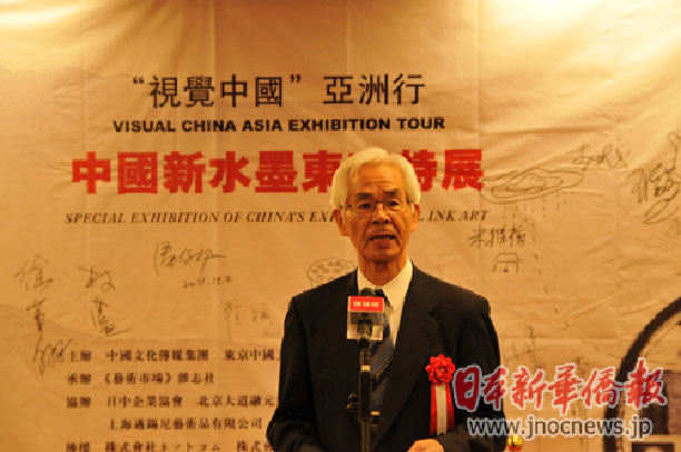杨开金在开幕式上致辞,他说,“视觉中国”亚洲行活动在日本首展,意在把传统文化与现代艺术有机融合的、运用水墨创作反映社会现实生活的艺术作品呈现给日本观众,这对促进两国的交流与创新发展将产生积极影响。