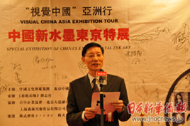 以“中国新水墨”为主题的大型水墨展于2011年12月2日在日本东京中国文化中心开幕,展览由中国文化传媒集团、东京中国文化中心联合主办,《艺术市场》杂志社承办,上海迈锡尼艺术品有限公司策划、协办。日本国立新美术馆馆长林田英树、日中文化经济交流发展基金会会长三浦一志、日中友好会馆理事长村上立躬、东京中国文化中心主任石军、中国文化传媒集团监事会主席杨开金等出席开幕式并剪彩。