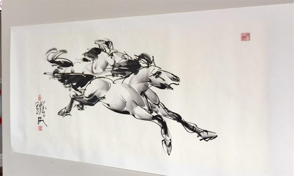 中国著名雕塑家、画家田跃民先生,应邀参加在哈萨克斯坦举办的2017阿斯塔纳世博览会,田跃民先生创作的水墨作品,展示在世博会的贵宾厅,来宾见其作品后,对展会工作人员说:“一直听说田跃民的作品有特色,寥寥几笔,用水墨就能将马的特点表现出来,他画的马与别人同”。