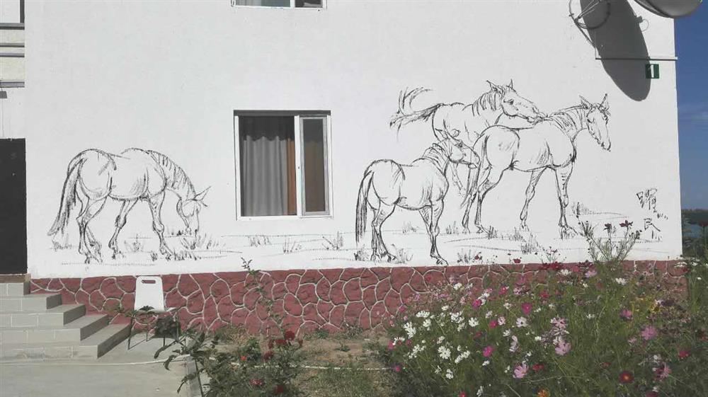 2017年9月3日,中国著名雕塑家、画家田跃民先生应吉尔吉斯斯坦共和国前总理奥托尔巴耶夫先生的邀请,以私人身份访问吉尔吉斯斯坦共和国,奥托尔巴耶夫先生亲自去机场接机,田跃民先生达到吉尔吉斯斯坦共和国后,奥托尔巴耶夫先生不仅向田先生介绍该国的风景区,并在第二天邀请田跃民先生去了一家马术俱乐部进行作品创作,田先生一到马术俱乐部,拿出画夹,信手拈来,马儿就跃然纸上,奥托尔巴耶夫先生对田先生创作的作品非常高兴,并特意选取度假村一幢房屋的墙面做画布,让田先生在墙面上创作关于马的作品,蓝天白云之下,盛开的鲜花和翠绿的树木映衬着白色的墙面,房屋后面一片湛蓝湖水,更令周围的环境美不胜收,田先生用简洁的线条,将马儿的悠闲淋漓尽致的表现出来,宁静、和睦是整幅画面的主题,田先生在这清水出芙蓉的美景中,应景了一幅天然去雕饰的作品,使作品达到与环境的和谐统一,中国作为东方文化的代表,对于线条艺术的深度理解在田先生的这幅作品上也体现出来,作品也让人们更能直观的了解中国的艺术,同时也为田先生此次吉尔吉斯斯坦共和国之行留下美好的回忆。
