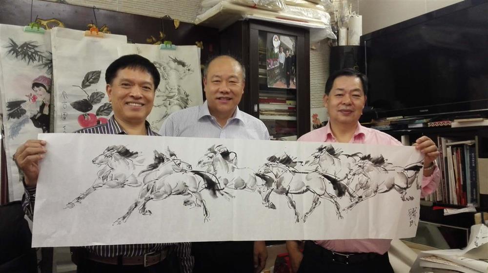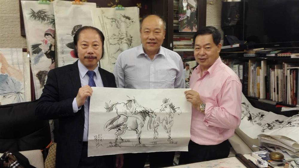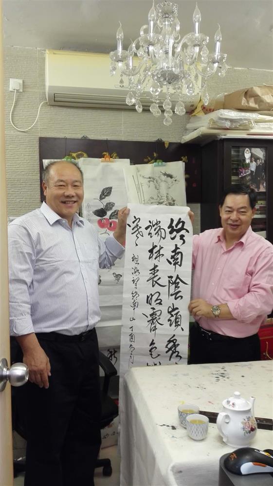 前年,田跃民先生为霍英东先生创作的肖像,得到霍震寰先生的首肯。今天,香港霍英东集团行政总裁霍震寰先生与田跃民先生相聚香港,霍震寰先生宴请田跃民先生,并特邀香港书画界的朋友与田跃民相识,双方互赠墨宝,共叙文化艺术,共祝新年的到来!